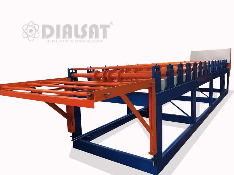 Perfiladeira máquina de fabricar telhas trapézio e onduladas serve para a confecção de telhas de aço ou metal, formada por grande estrutura que contém em média com 11 rolos de aço e cromo, com eixo aço 1045. Equipada com sistema de corte hidráulico, que garante perfeição na hora do corte além de ser adaptado com bomba de engrenagem.